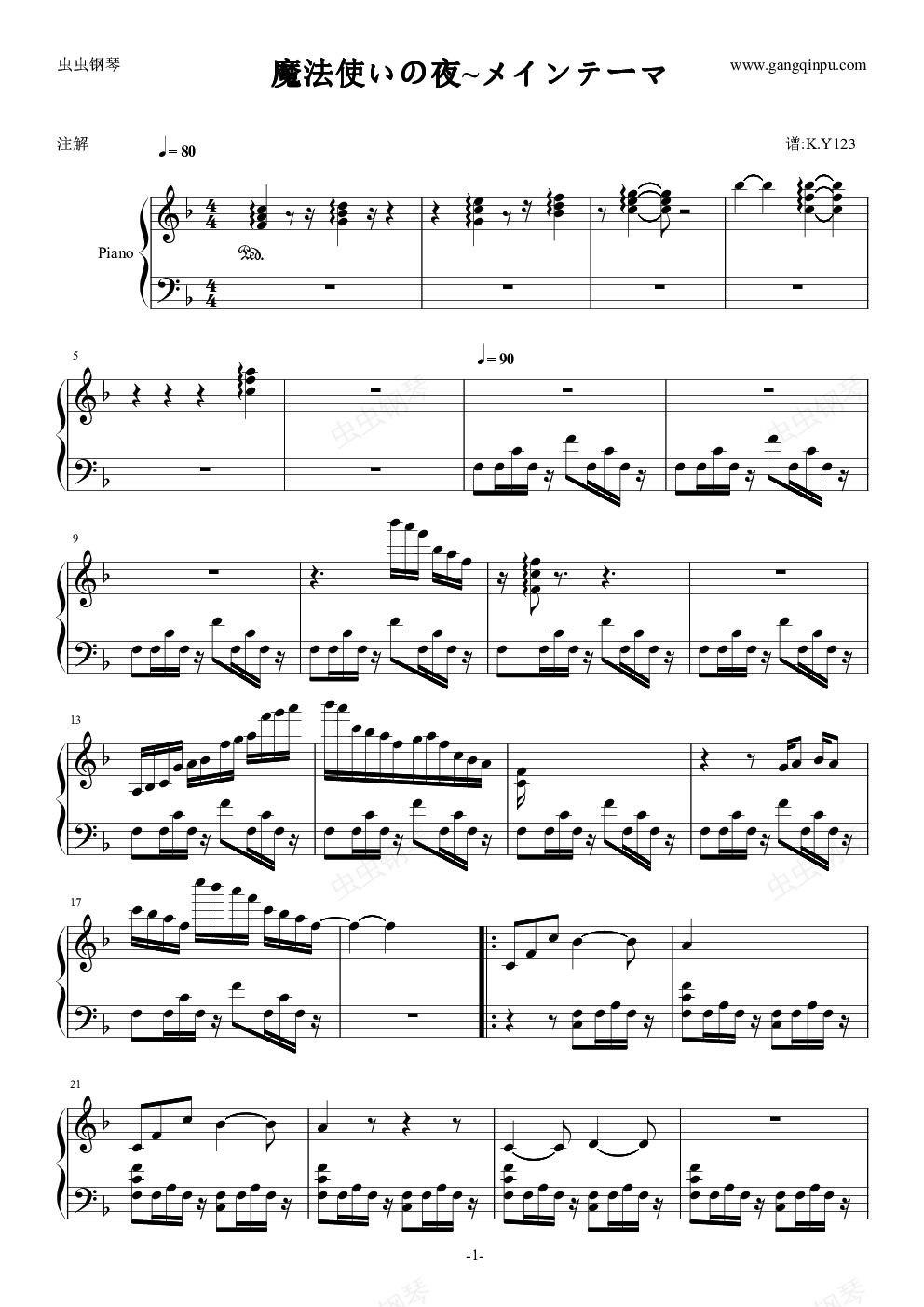 钢琴谱:魔法使いの夜~メインテーマ