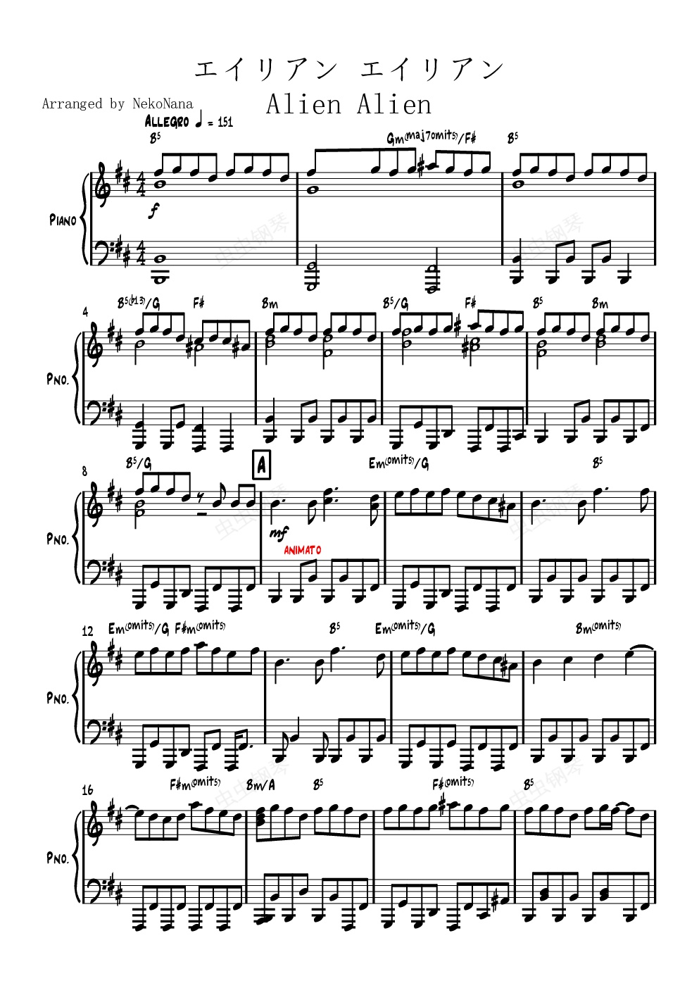 钢琴谱:Alien Alien(外星人 外星人)