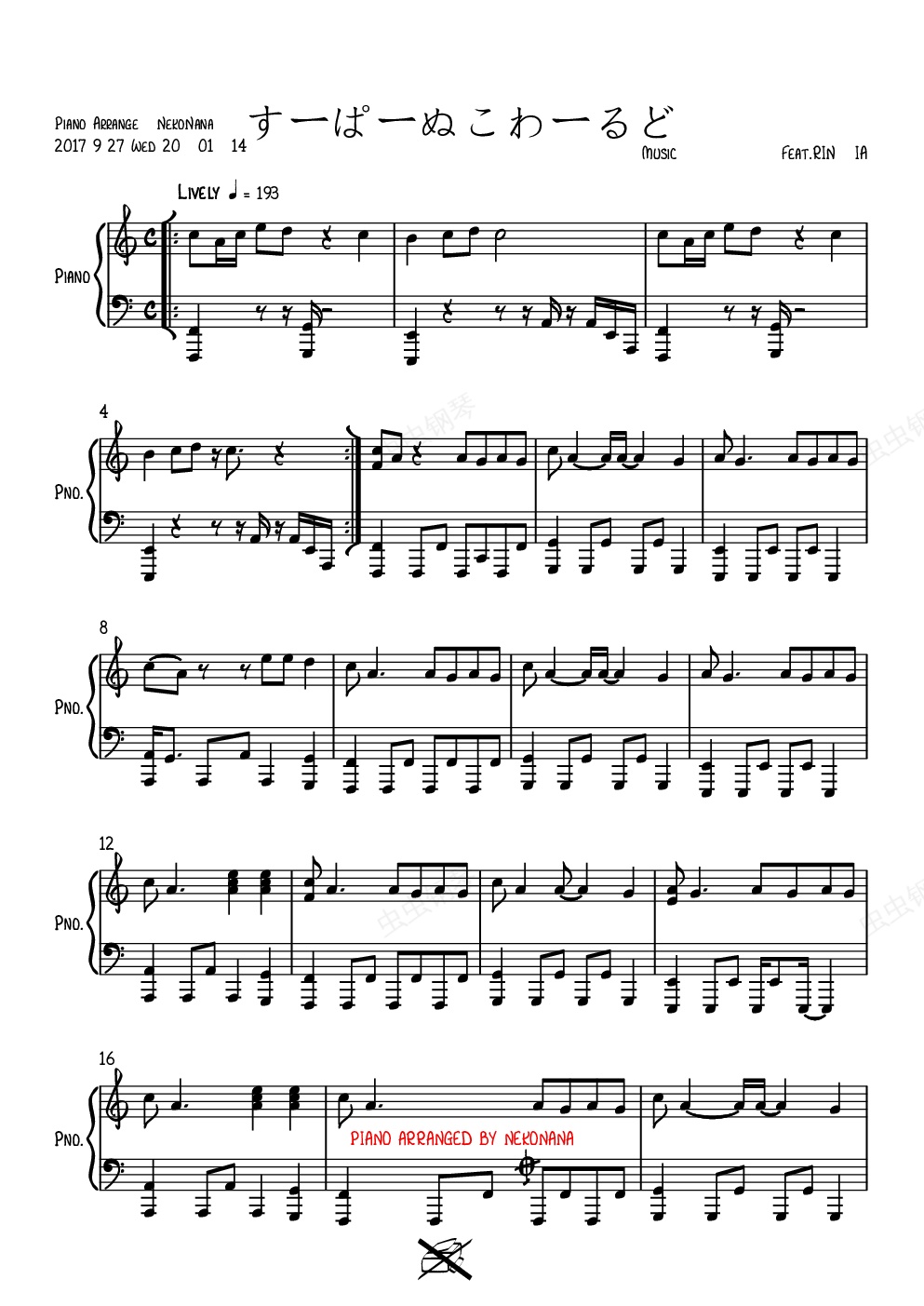钢琴谱:すーぱーぬこわーるど(超级喵世界)