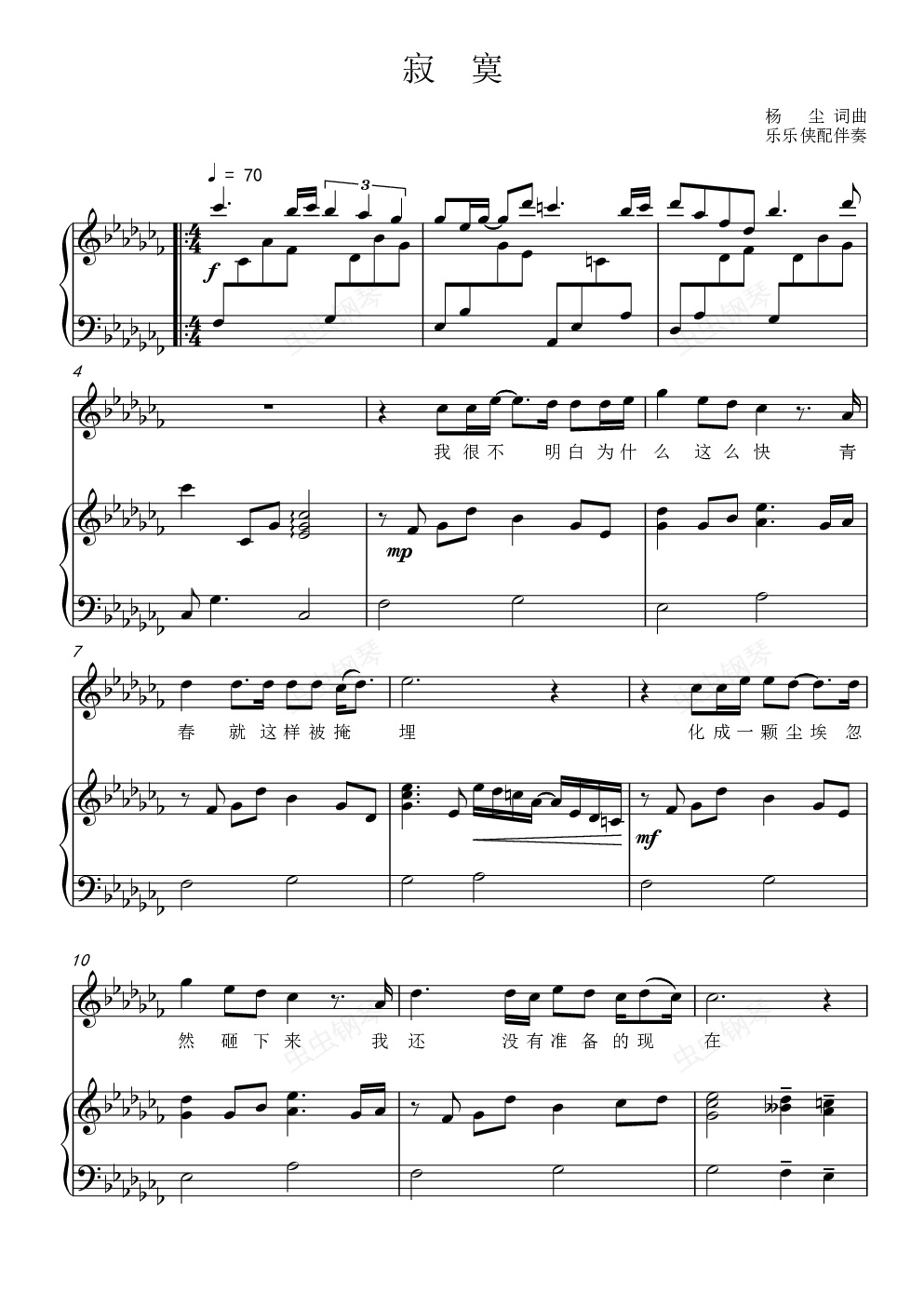 钢琴谱:寂寞(弹唱版)
