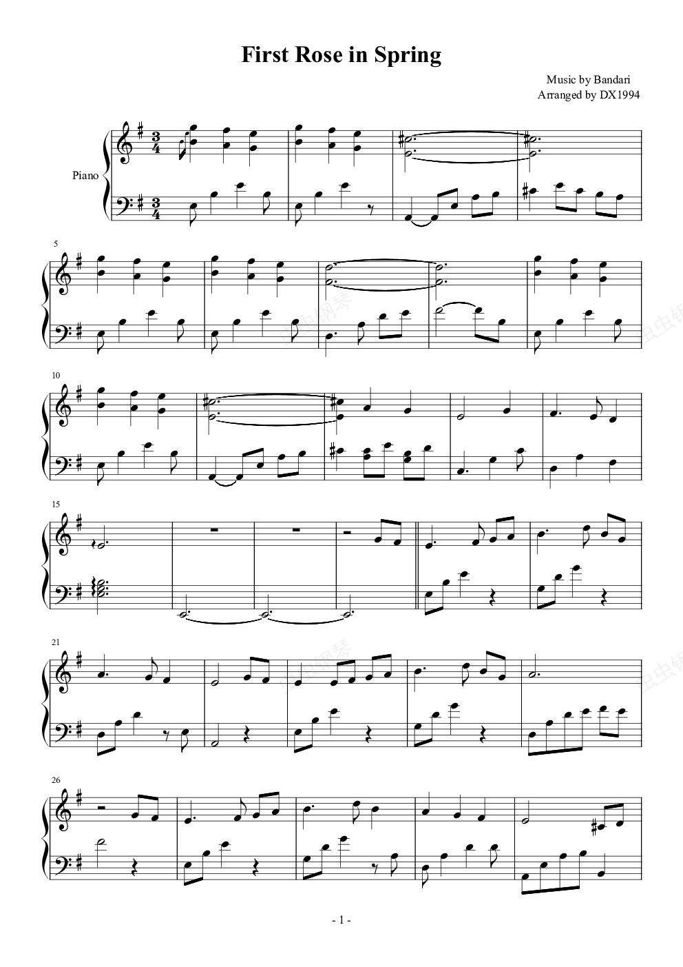 钢琴谱:First Rose in Spring(春天第一朵玫瑰)