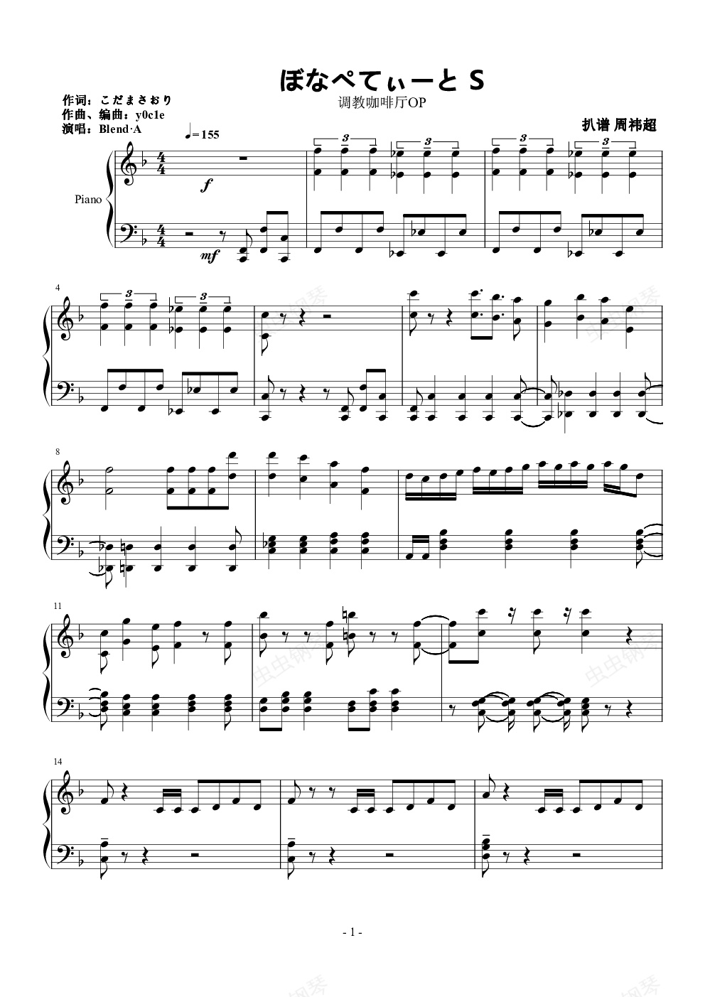 钢琴谱:ぼなぺてぃーと S[调教咖啡厅OP]