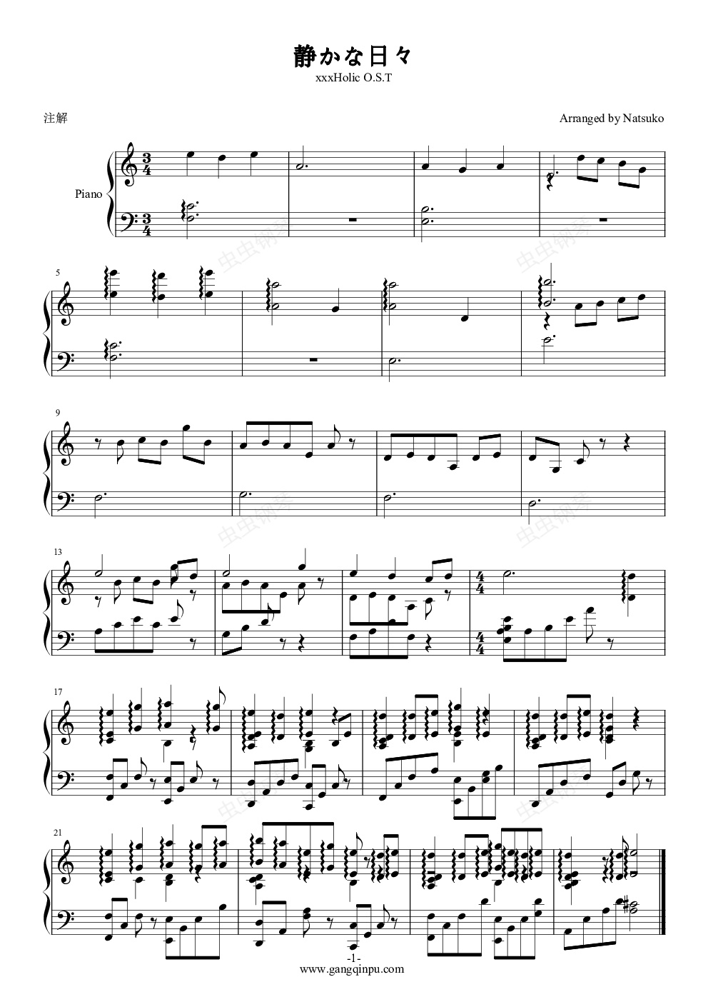 注意!17小节开始右手有跨度很大的音。因为是琶音,所以可以在和旋弹完后再快速用小指够到最高音。但这个音也是主旋律音之一,所以要弹得清晰。(好像还有一些不好弹到的hhh……请根据自己的情况修改啦,不过大部分可以弹)右手还有一些第二声部的音,都是可以在弹主旋律的同时够到的。这份谱扒得有点意识流……如果真的不好弹的话大家听听就好啦_(:з」∠)_百度 水晶貓