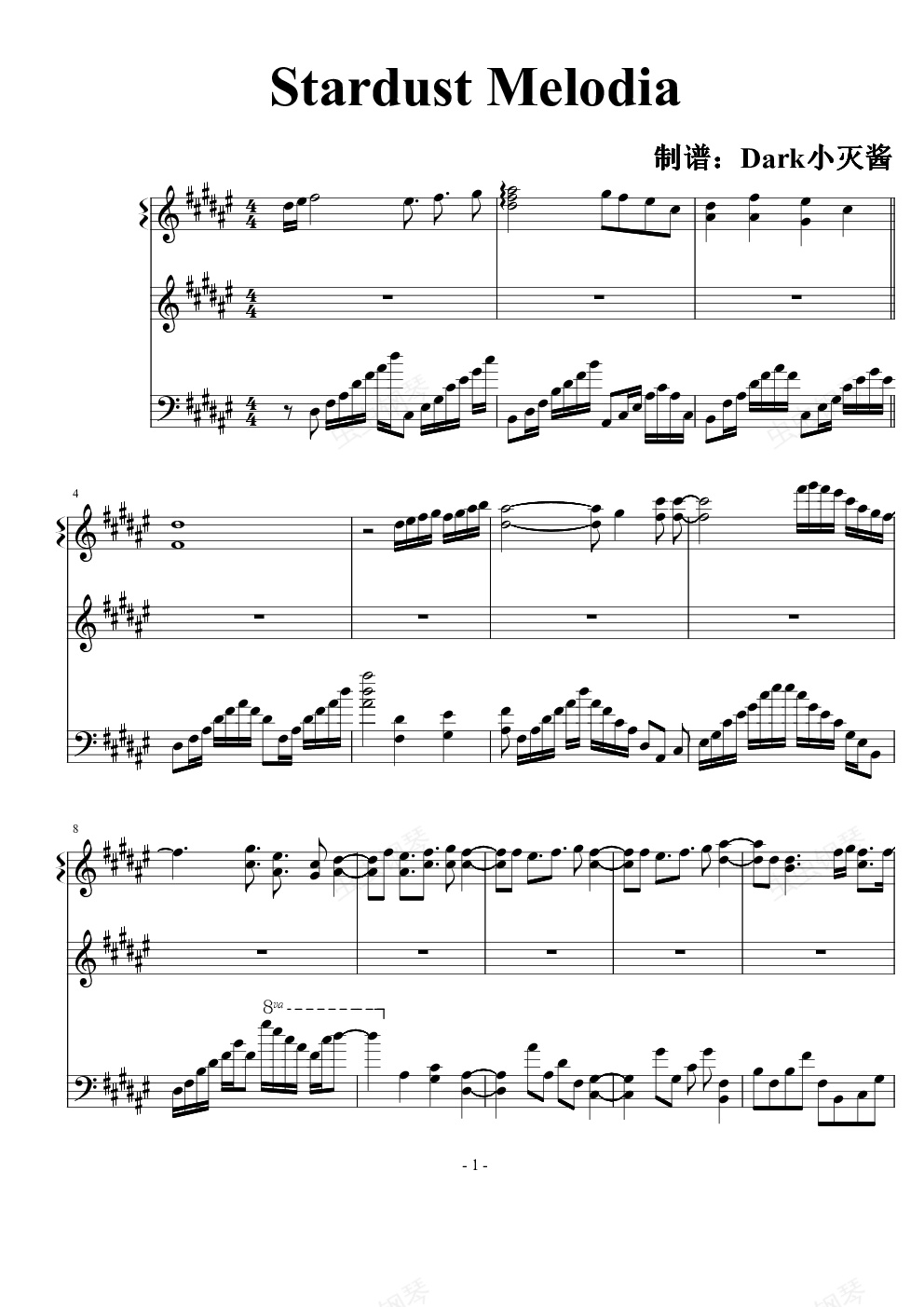 钢琴谱:【境界线上的地平线】ed Stardust Melodia