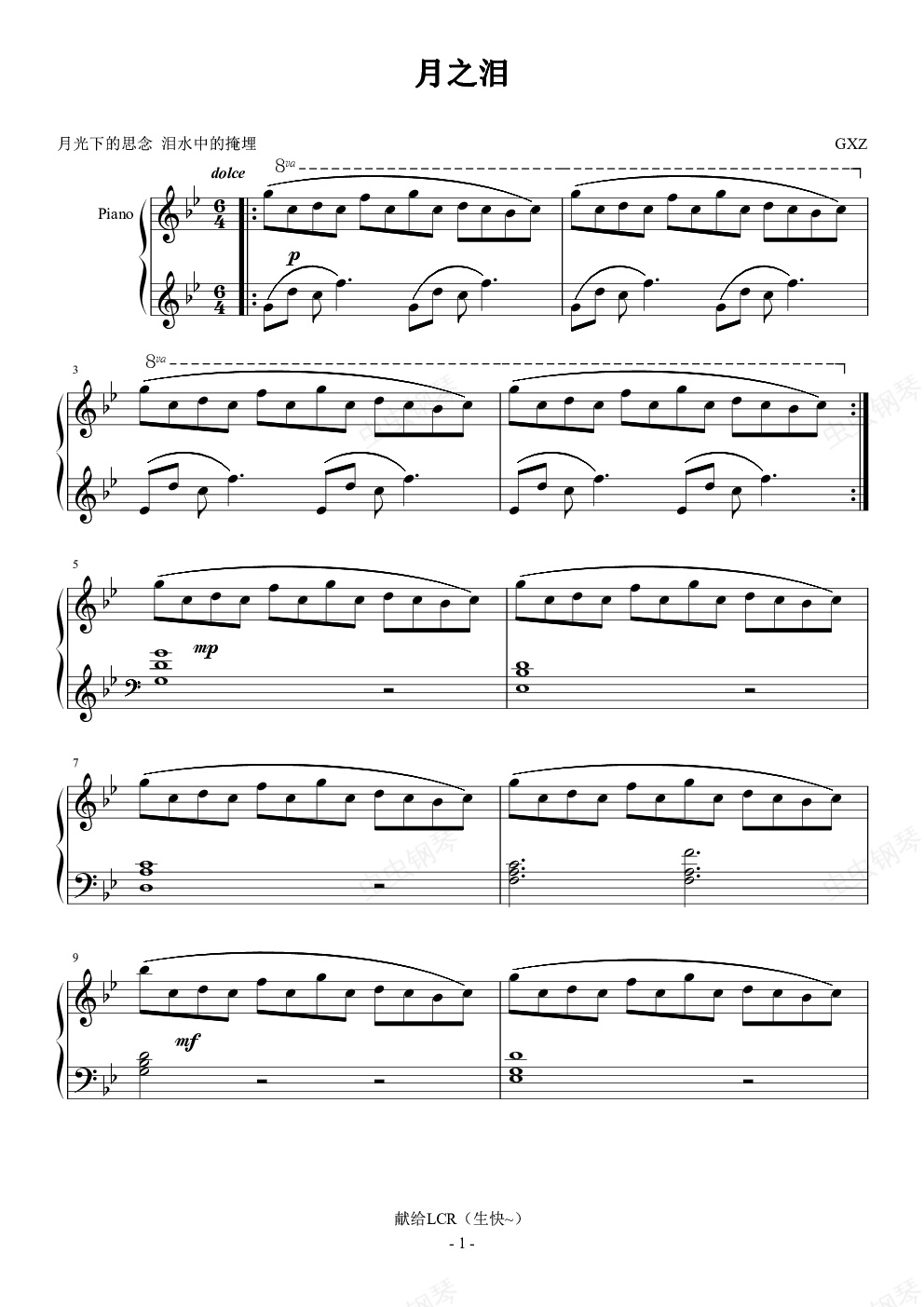 钢琴谱:月之泪(尼尔机械纪元/尼尔1代)
