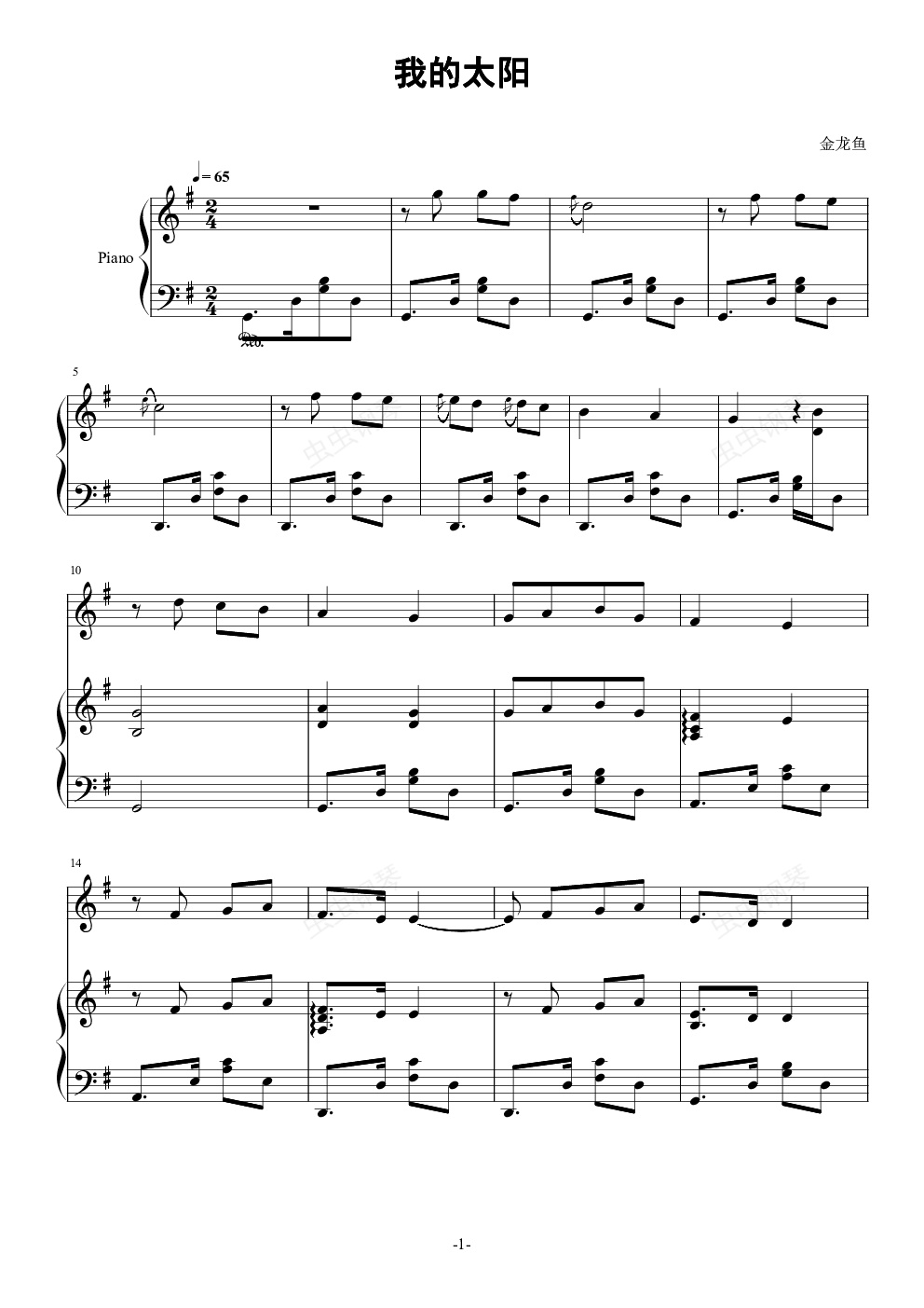 钢琴谱:我的太阳-伴奏即兴改编随记