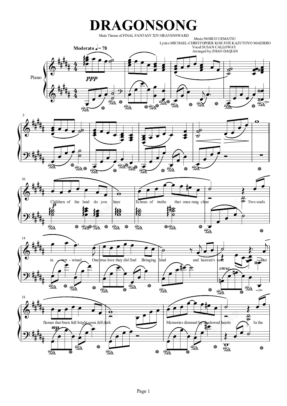 《最终幻想XIV》3.0资料片《苍天的伊修加德》中的主题曲。由植松伸夫作曲,迈克尔·克里斯托弗·科吉·福克斯作词,歌词由前广和丰翻译。苏珊·卡罗维演唱。