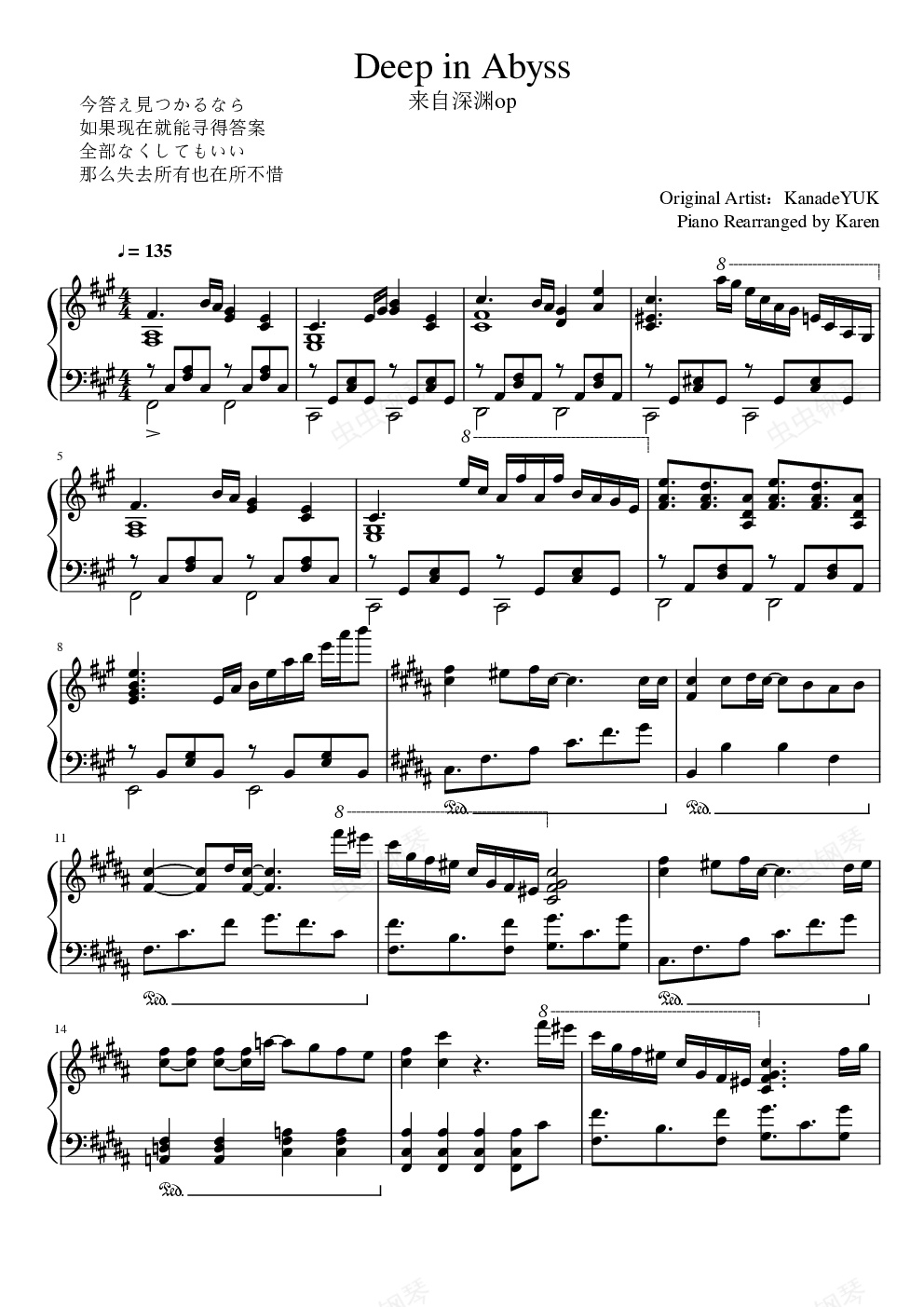 [IMG]/pu/2017/11/11/__7384__[/IMG]《来自深渊》是我很喜欢的7月番之一,虽然画风简朴但是真的看了非常有感触。这首op旋律非常好听,而且歌词和剧情与主题十分贴切。所以还是十分推荐大家看看这部番剧听听这首歌~这次我主要还是还原原曲,但是原曲风格中途经常改变;所以感觉在编配的时候感觉“画风”的转变有些吃力和生硬,不知道dalao们有没有什么建议和经验QwQ结尾改动比较大,一开始TV版的原曲结尾感觉改成钢琴根本没有结束的感觉,所以弄了个比较简单粗暴的结尾,希望问题不是很大。