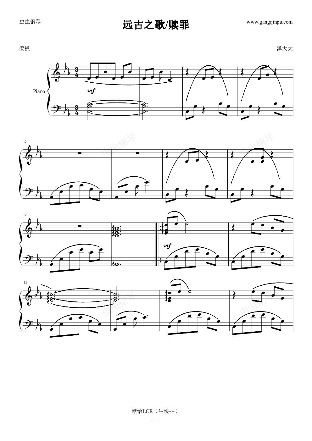 钢琴谱:赎罪(尼尔机械纪元/尼尔系列)