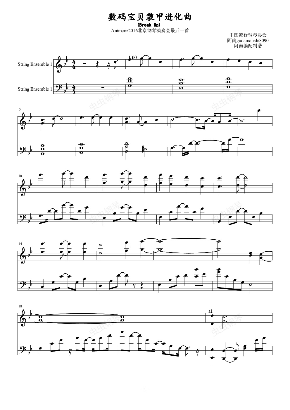 钢琴谱:Break Up(数码宝贝装甲进化曲)