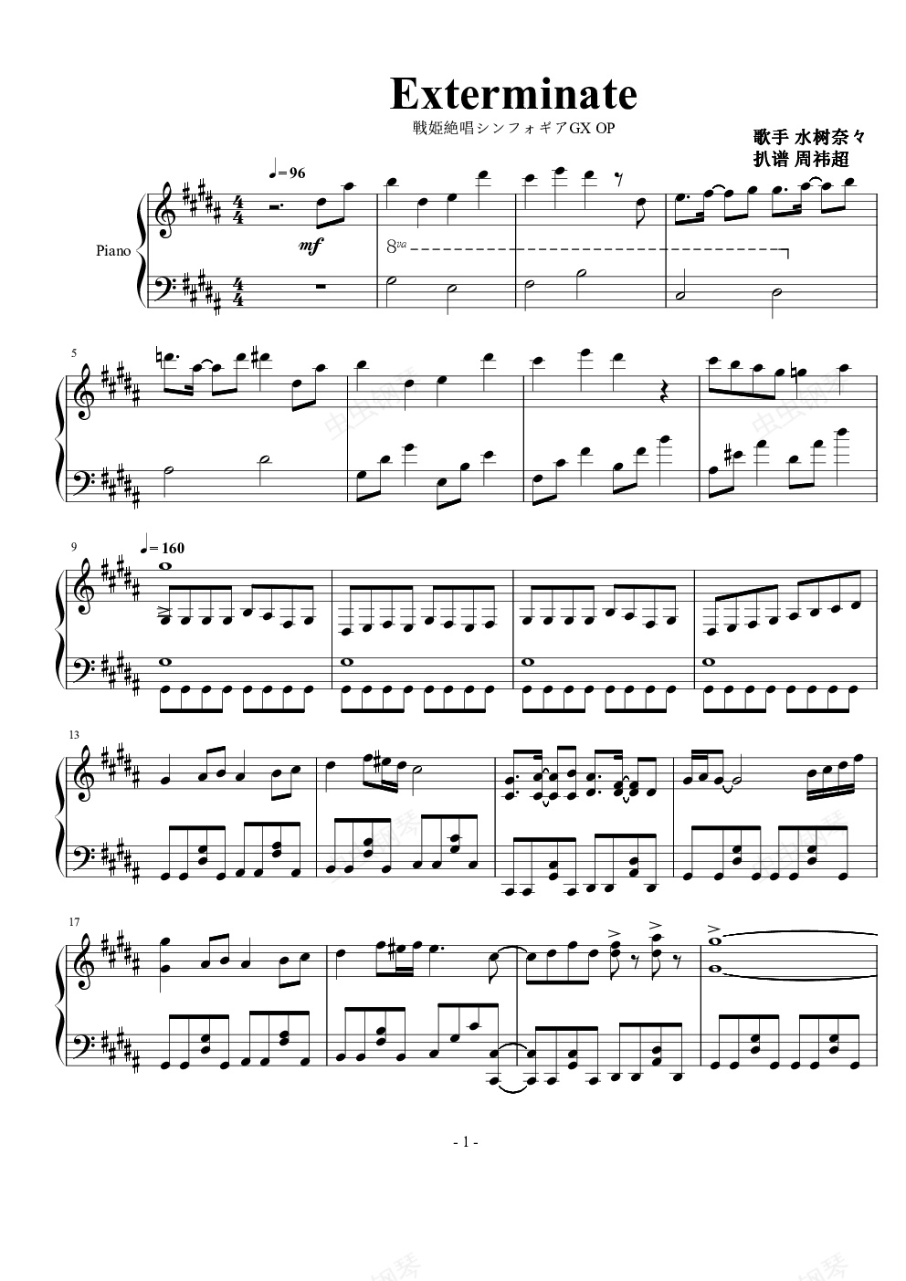 钢琴谱:Exterminate[戦姫絶唱シンフォギアGX OP]