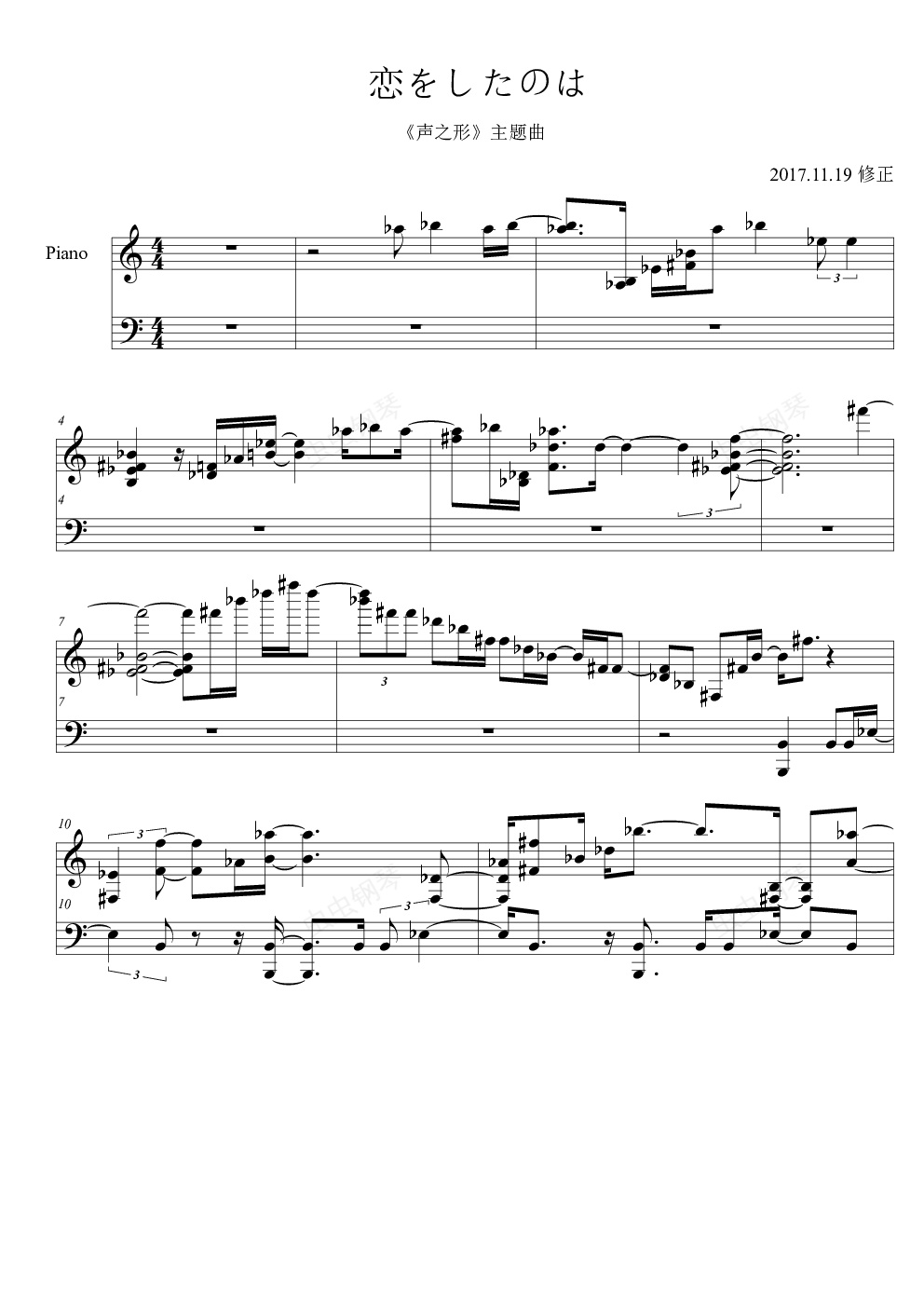 钢琴谱:《声之形》主题曲 - 恋をしたのは 修正版