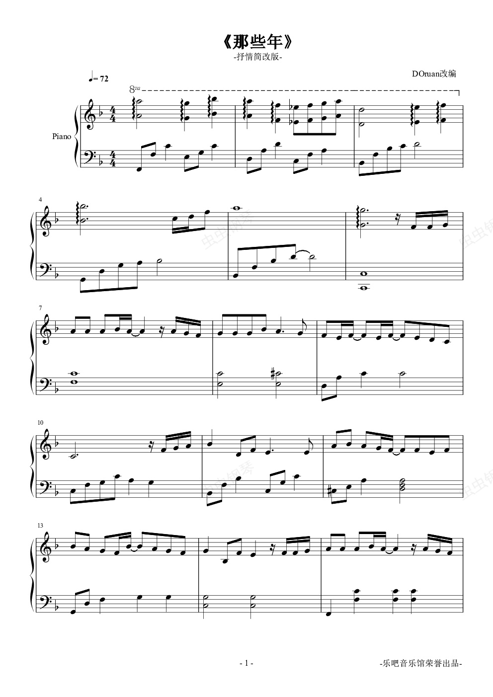 主题曲和电影都很经典,主题曲运用了很多属七经过和弦和代理和弦,所以。。你会看到谱子的临时升降号有点多。然后乐大吧把经典的和弦进行都保留了下来,再把左手一些坑爹的大跨度改简单了,还把高能复杂的间奏去掉了(改简单了就没原版弦乐编配的宏伟气势了,干脆就咔擦了)嗯,理论上来说,不到半本车尔尼599的技术水平都能弹下来这个唯美的抒情简化版《那些年》,新手福利啊喜欢我的曲谱请关注乐吧音乐馆公众号,首发曲谱及视频,有好听的曲子也要公众号私信我喔,会选一部分扒谱改编哒![IMG]/pu/2017/11/23/__6761_15518_[/IMG]