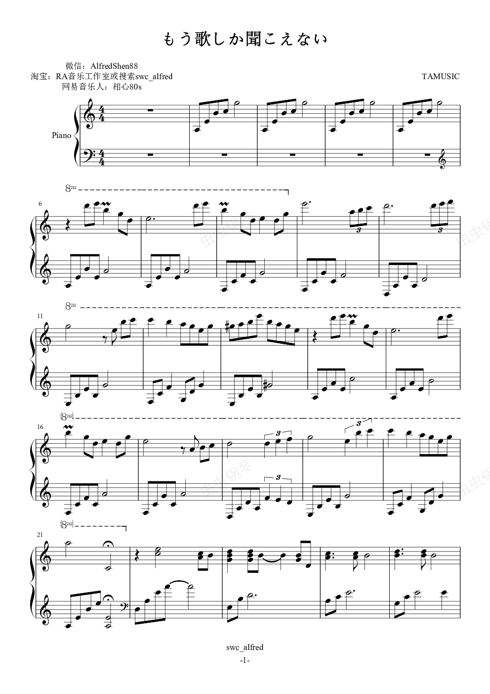 钢琴谱:もう歌しか聞こえない