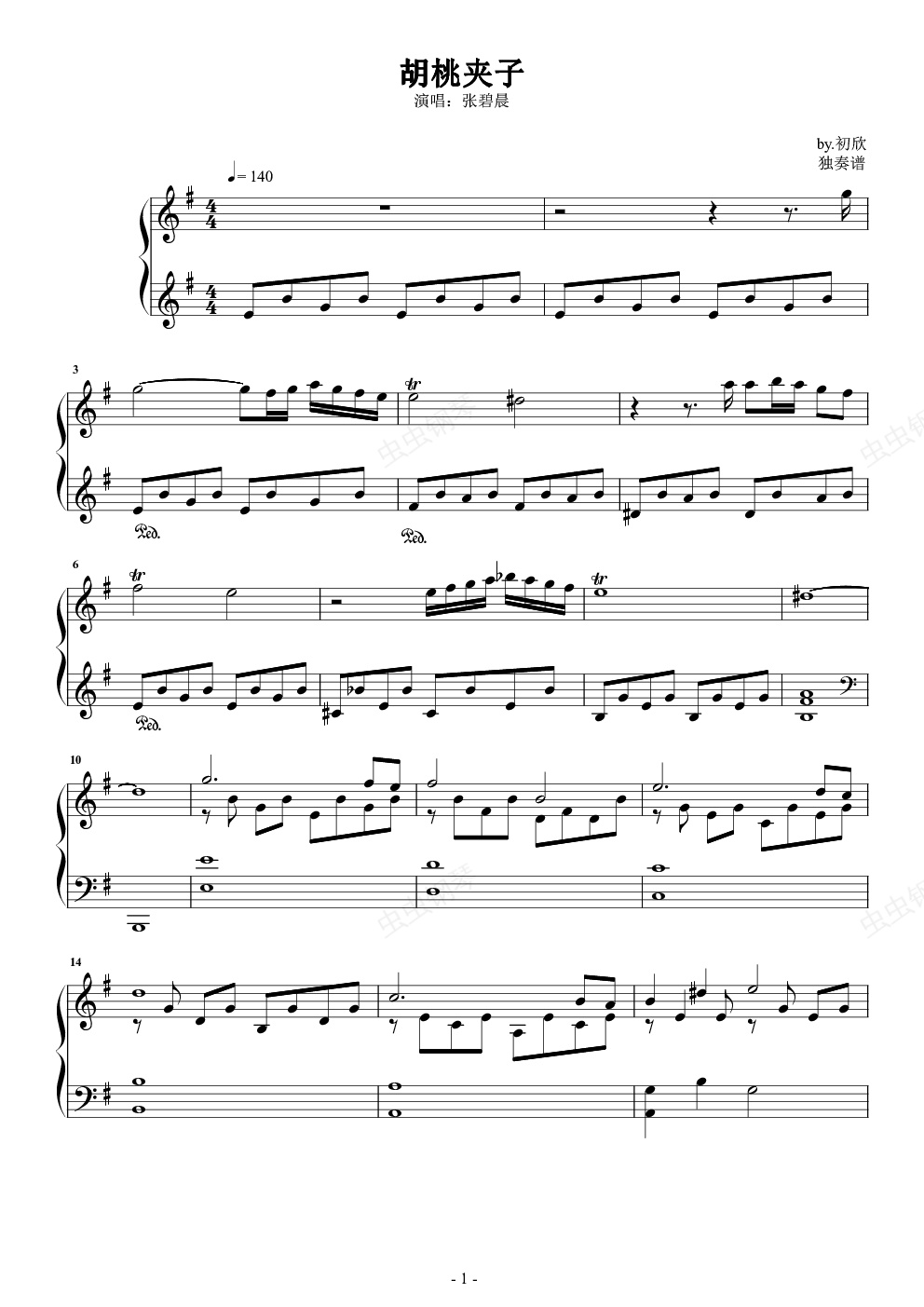 钢琴谱:胡桃夹子 张碧晨 独奏