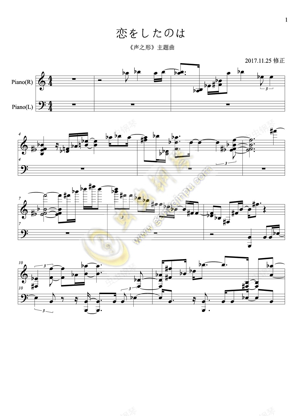 钢琴谱:《声之形》主题曲 - 恋をしたのは 修正版(2017.11.25)