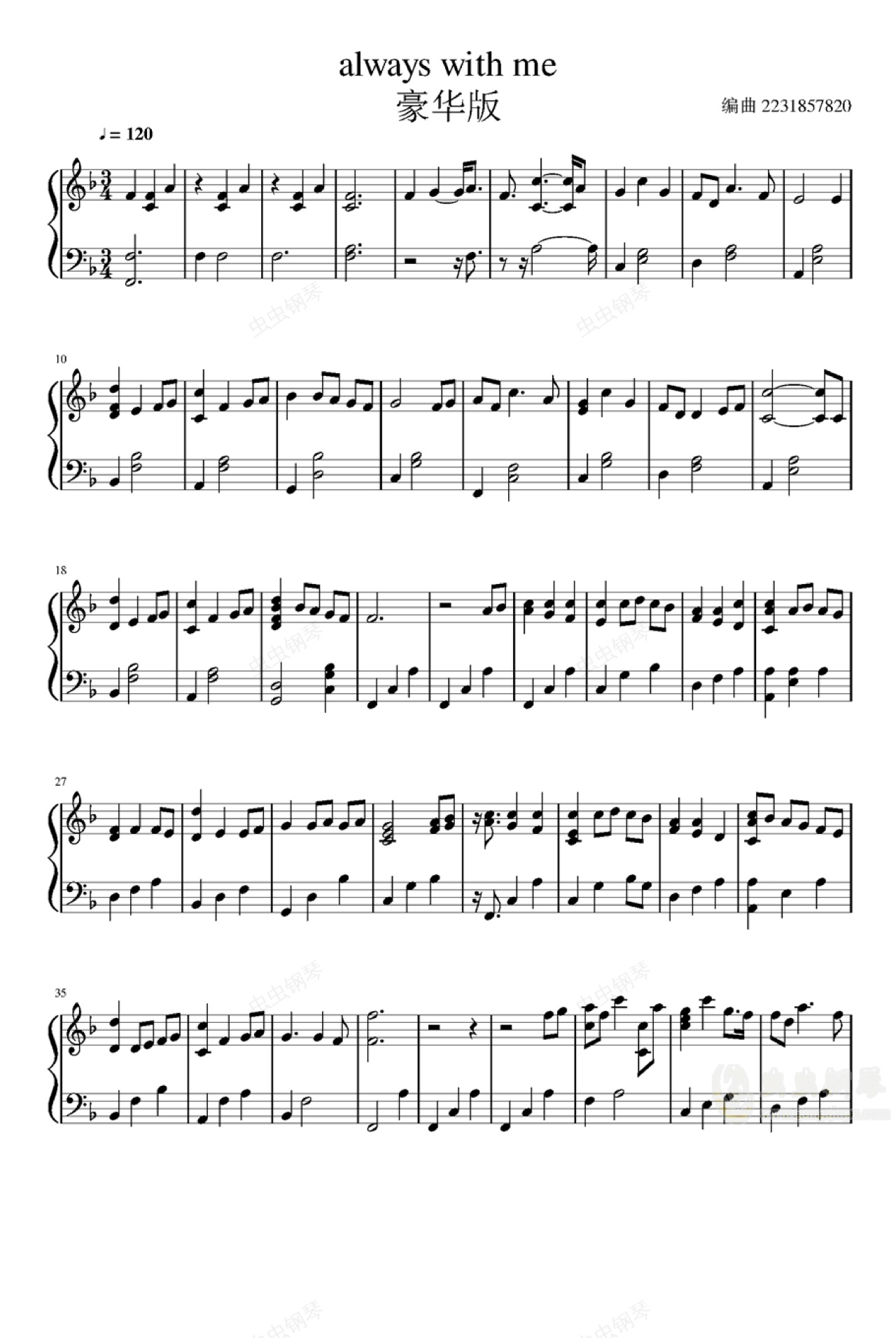 钢琴谱:Always With Me豪华版