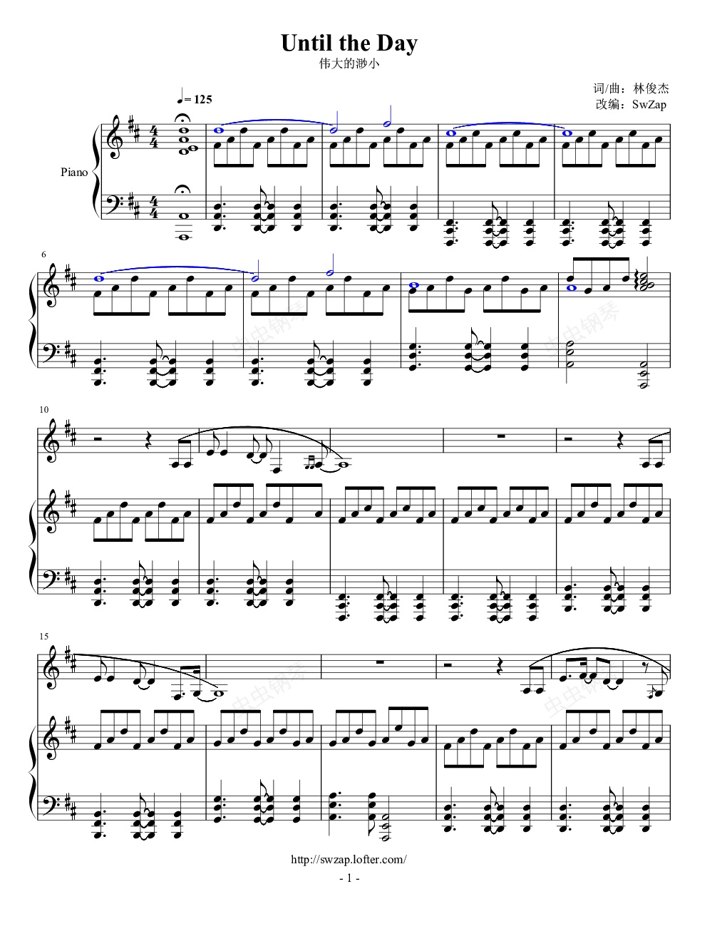 钢琴谱:林俊杰 - Until The Day(《伟大的渺小》英文版)纯钢琴伴奏