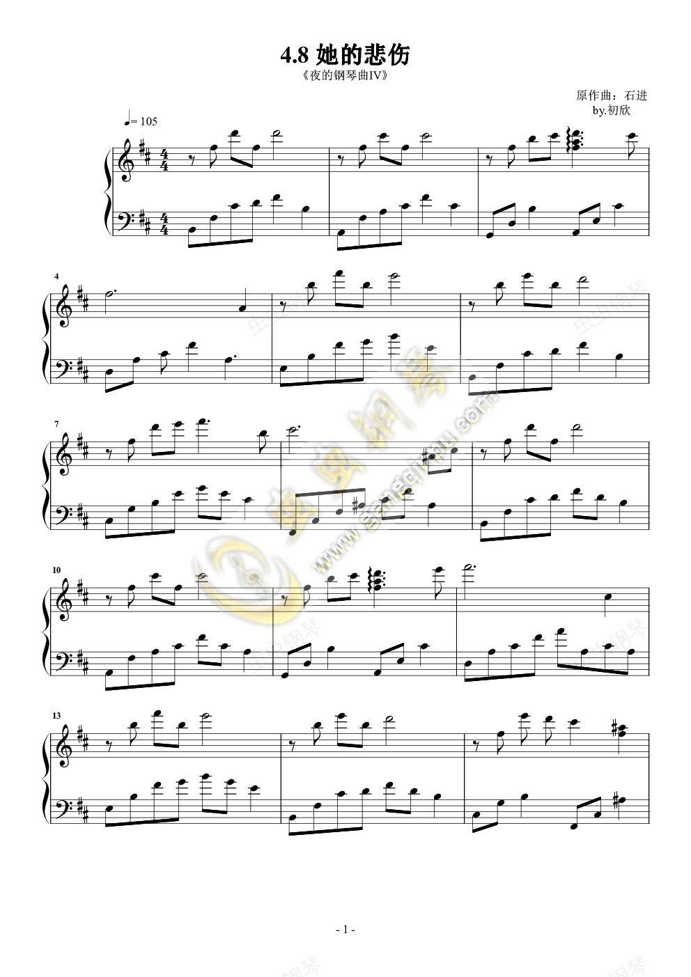 钢琴谱:她的悲伤 (夜的钢琴曲IV)