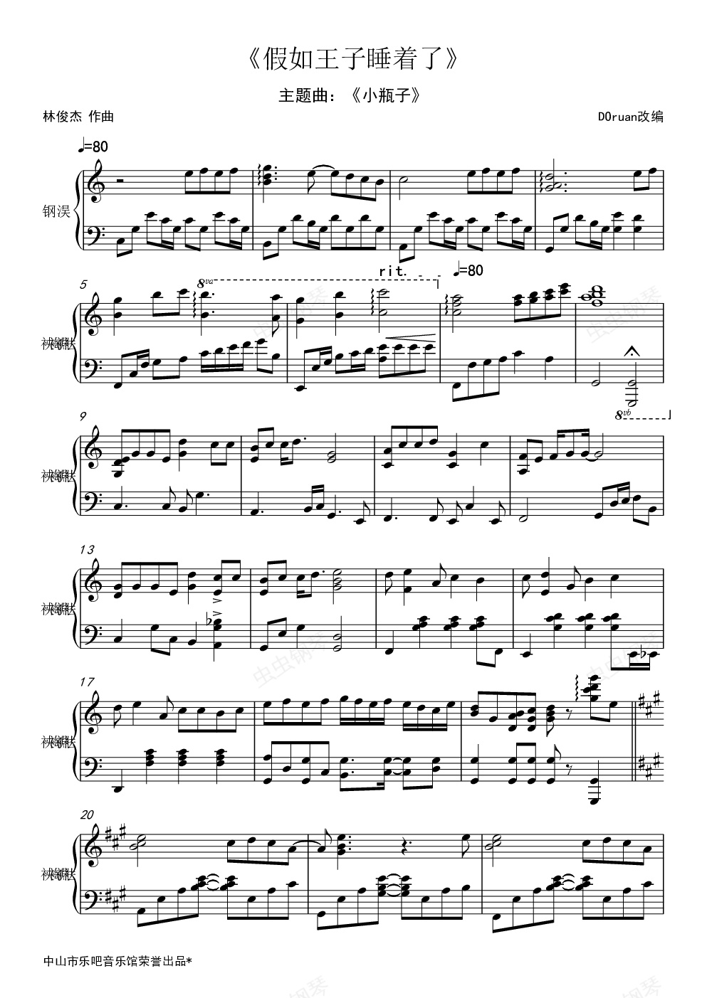 钢琴谱:《假如王子睡着了》主题曲 - 小瓶子 【乐吧】