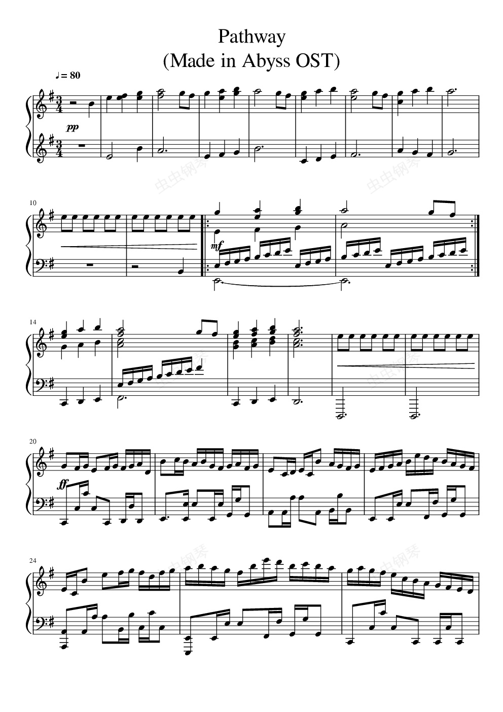 钢琴谱:【来自深渊】道路