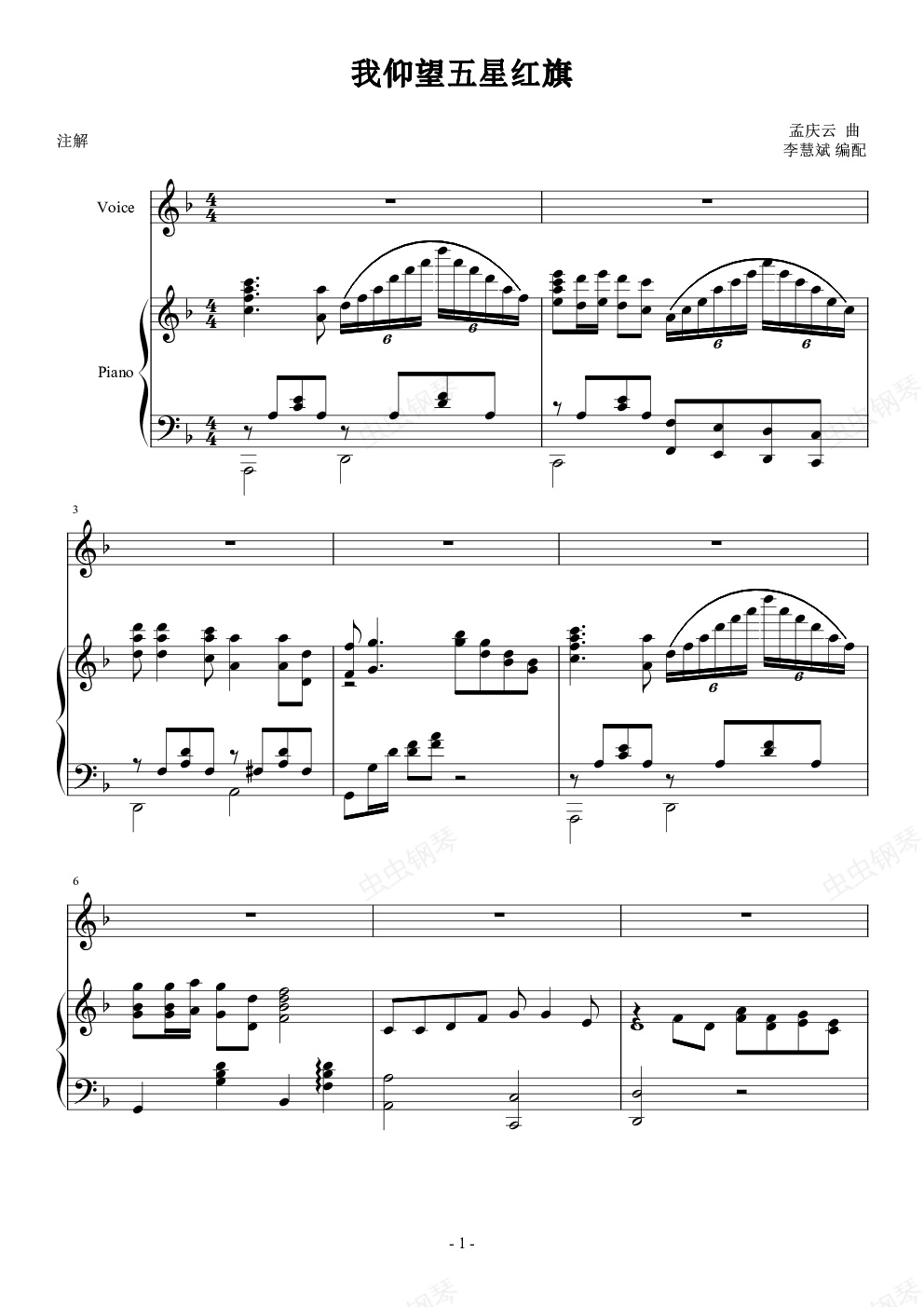 钢琴谱:我仰望五星红旗
