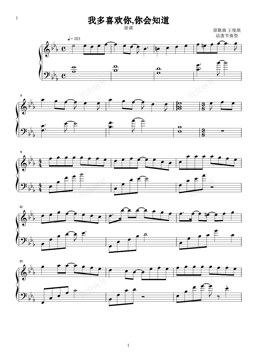 钢琴谱:我多喜欢你,你会知道 原声抒情