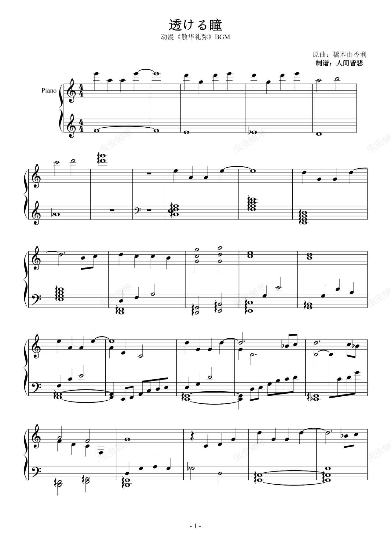 钢琴谱:透ける瞳——《散华礼弥》BGM