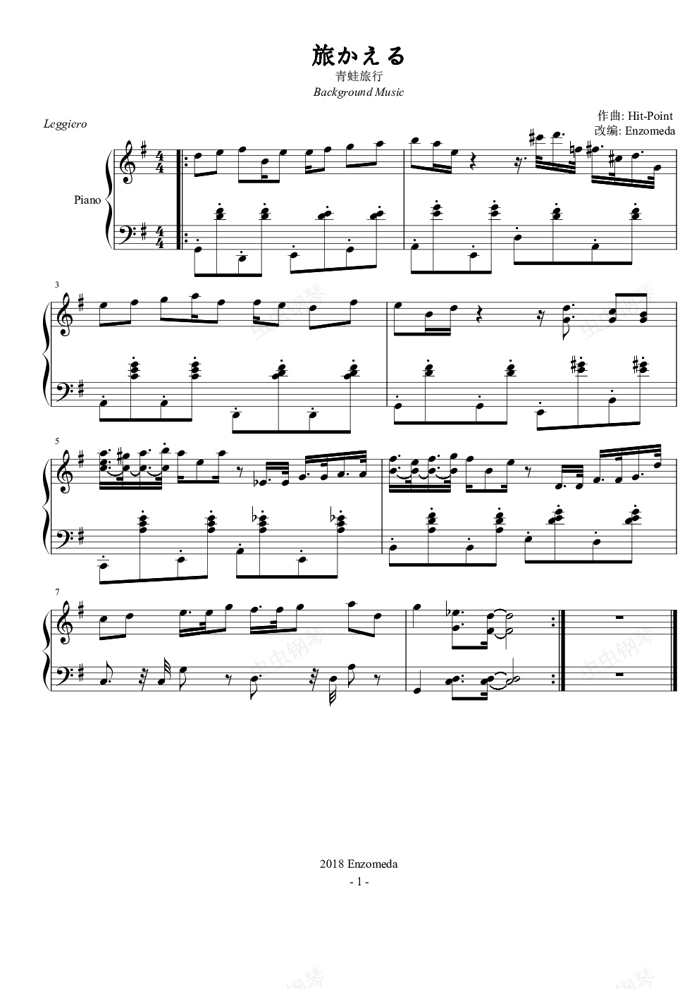 钢琴谱:旅かえる(旅行青蛙)