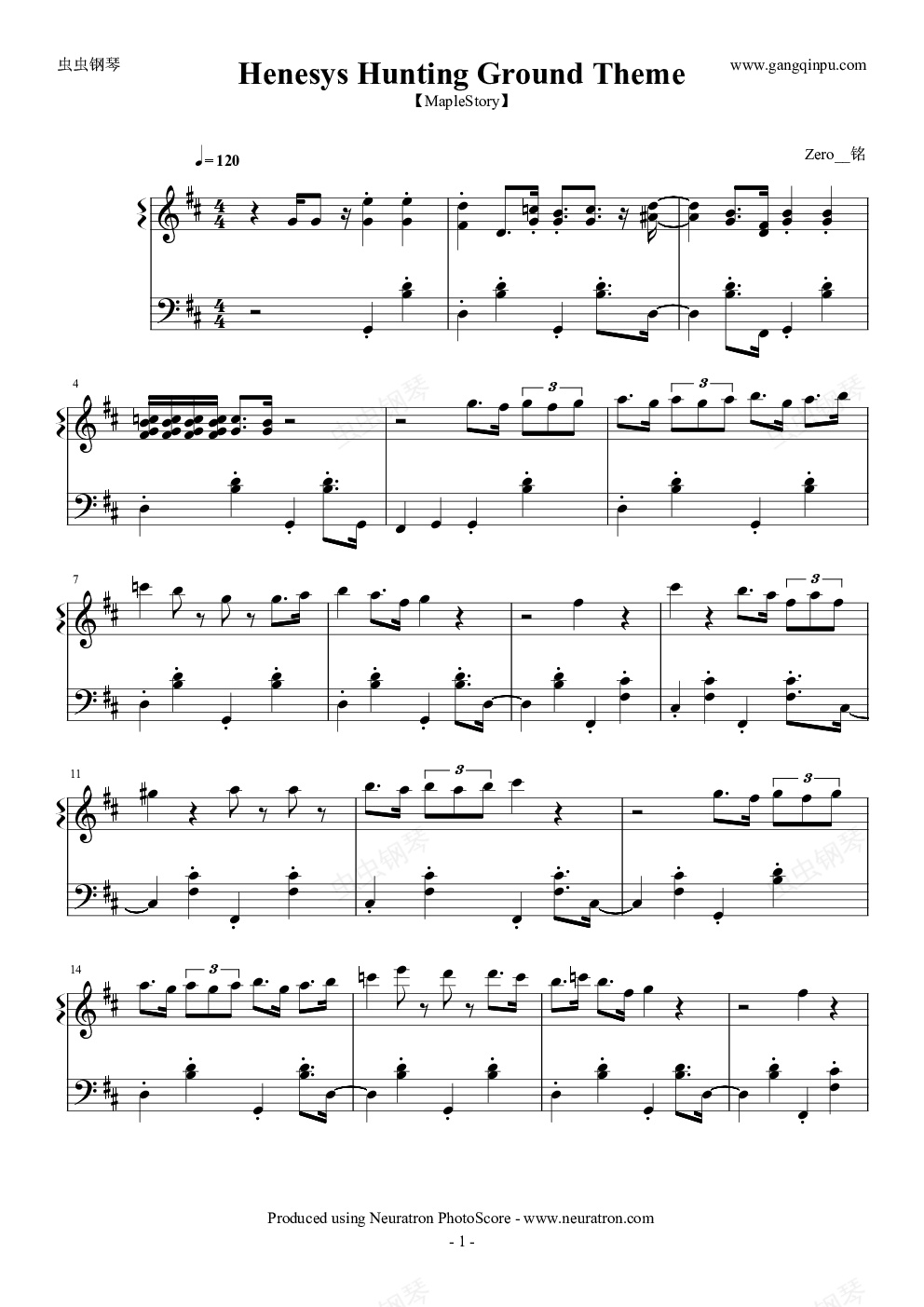 钢琴谱:冒险岛—射手村训练场