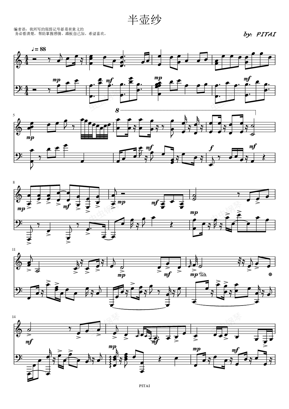 钢琴谱:半壶纱