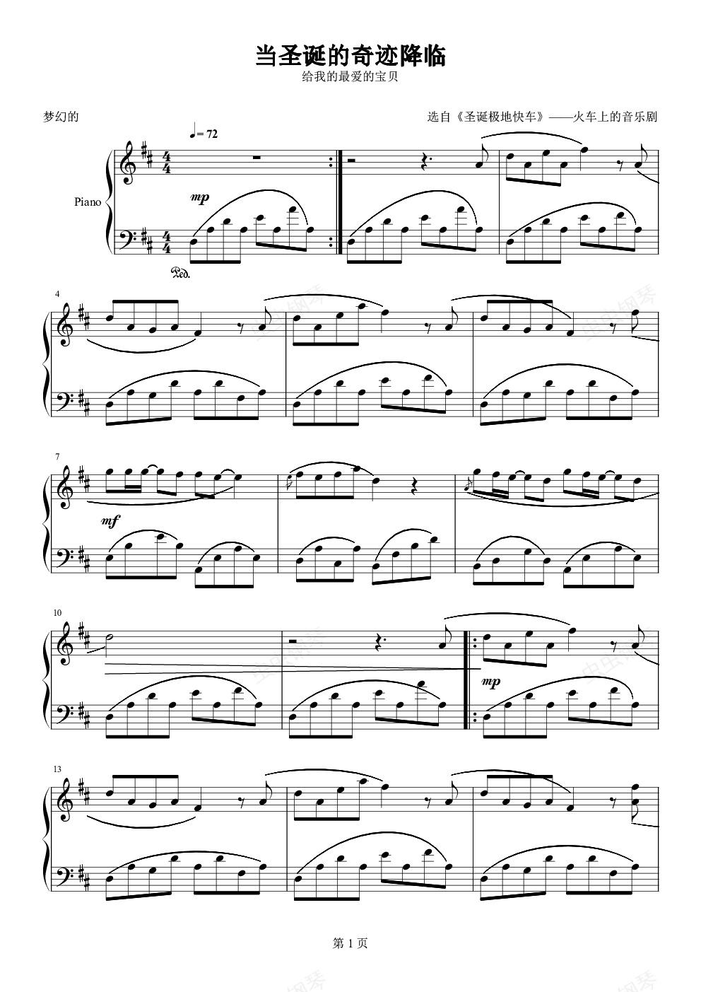 钢琴谱:当圣诞的奇迹降临 When Christmas come to town