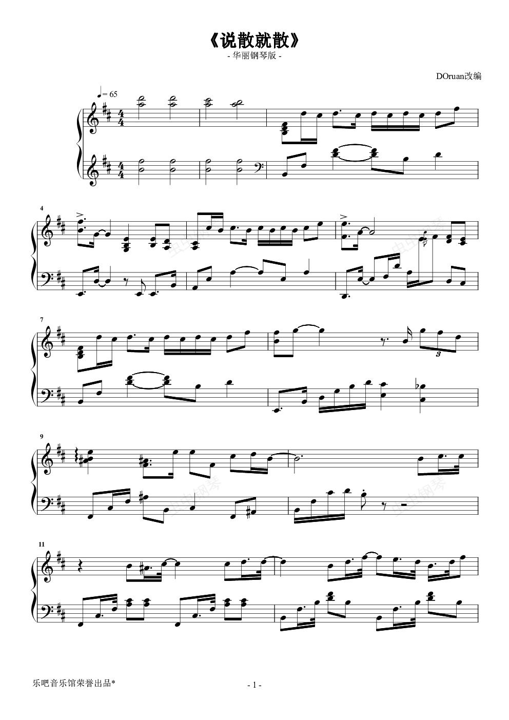钢琴谱:《说散就散》华丽独奏版 【乐吧】
