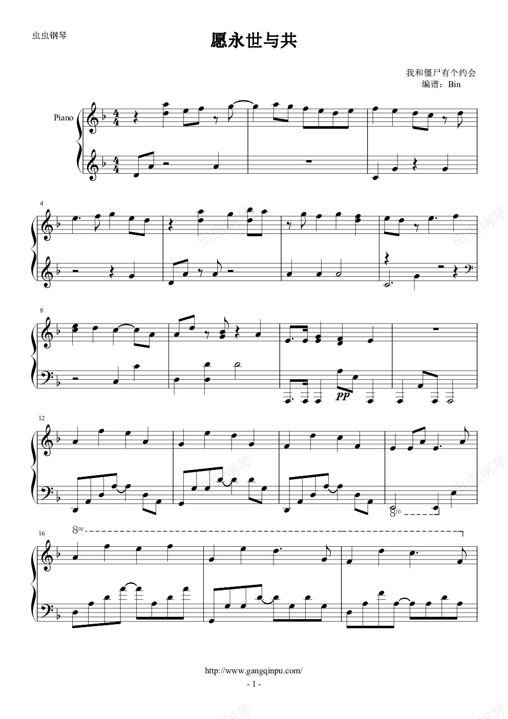 钢琴谱:愿永世与共