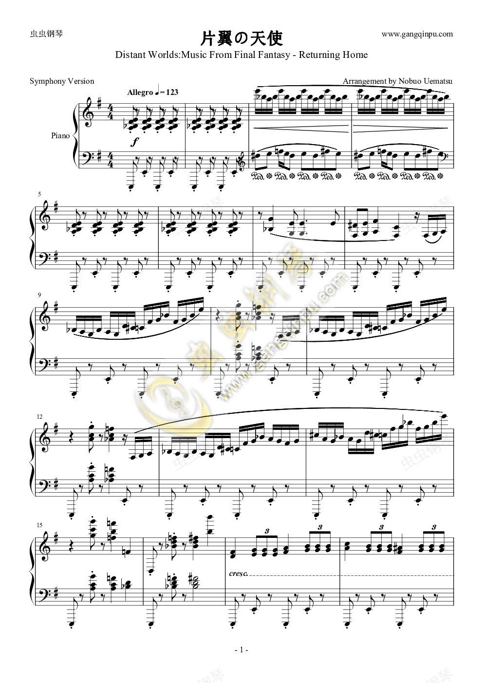 2011年1月19日,《》的 Home音乐专辑中已收录了新版《单翼的天使》交响乐,这则意味着《单翼的天使》将成为《》交响音乐会的高潮曲目。歌中赞颂了《最终幻想VII》中的常胜将军萨菲罗斯的光辉战绩,是充满热血的一首交响乐曲。