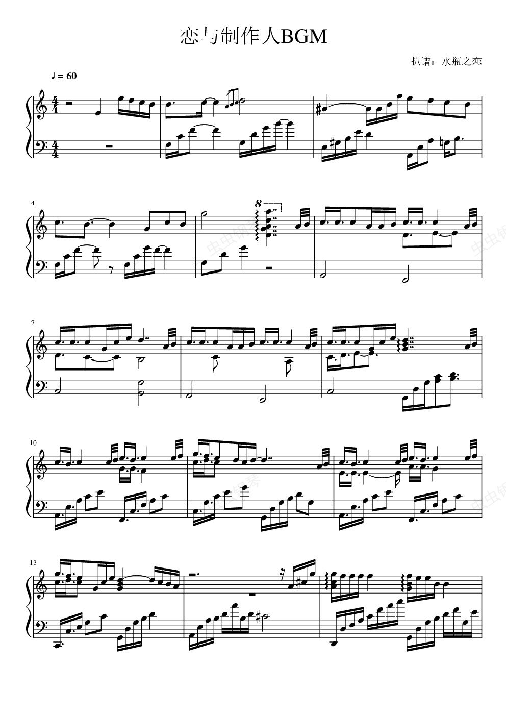 钢琴谱:恋与制作人BGM - 恋语