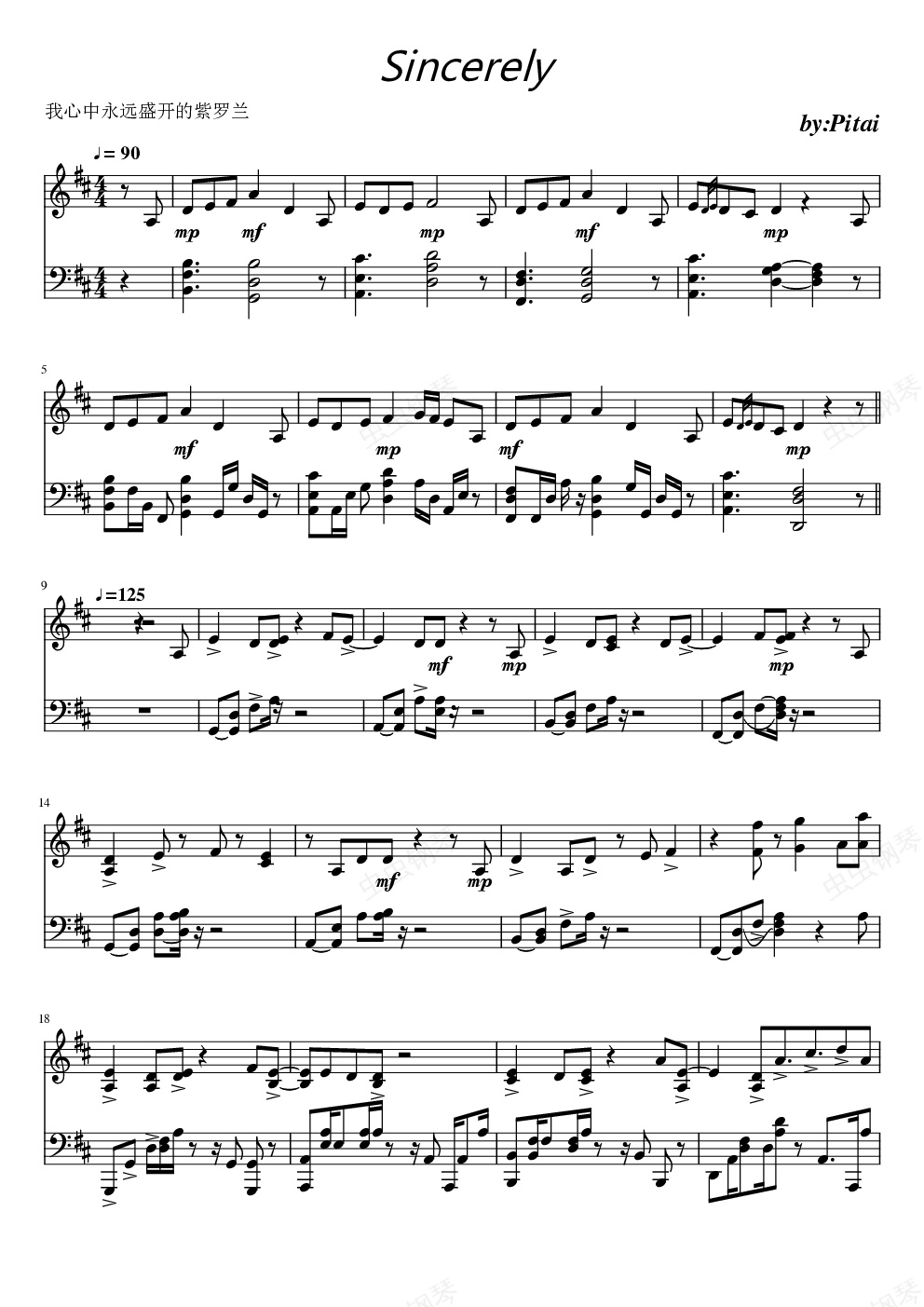 钢琴谱:【紫罗兰永恒花园】主题曲sincerely