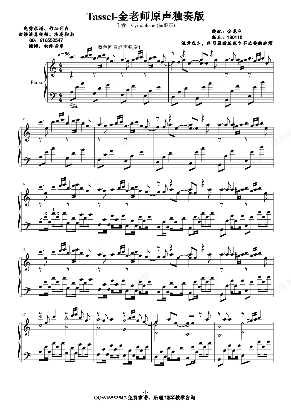 独奏谱-版本说明微博:初终音乐,微博每月放出免费求谱名额私人订制、免费求谱、教学咨询等请加QQ对此独奏谱有:转调、简化、速成等需求的请加 免费扒谱编配请加QQ放出的独奏谱中有本人弹奏时为了方便自己弹奏或者为达到更好个人弹奏效果而做改动具体求谱、写谱、谱面等问题的详细说明请参考QQ空间日志以后的修改版都会在QQ放出版本修改的具体内容,欢迎大家查阅