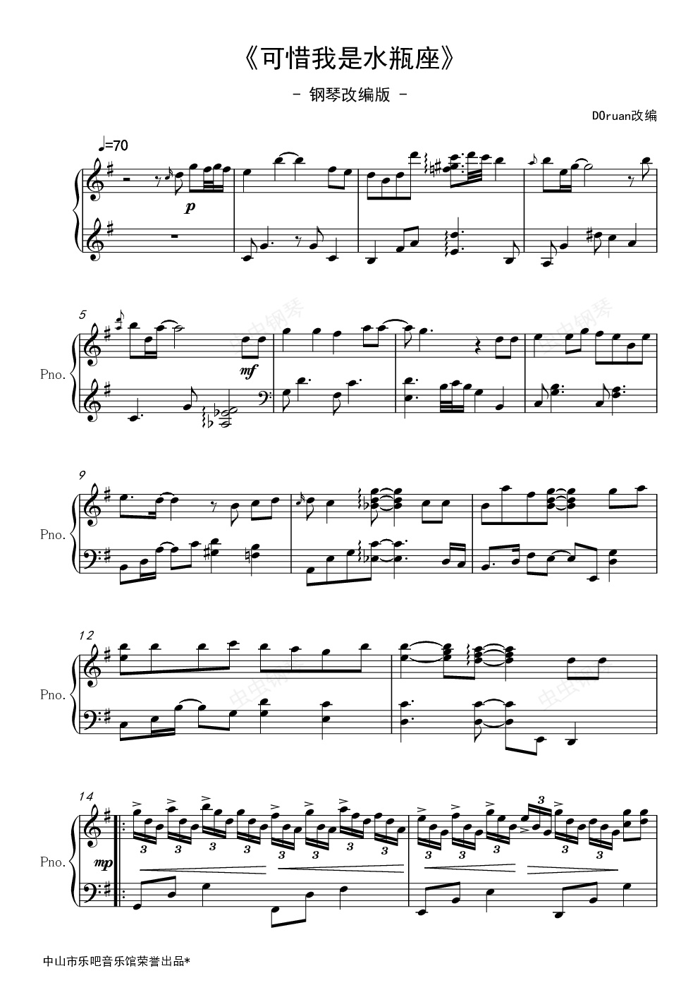 钢琴谱:《可惜我是水瓶座》改编版 【乐吧】