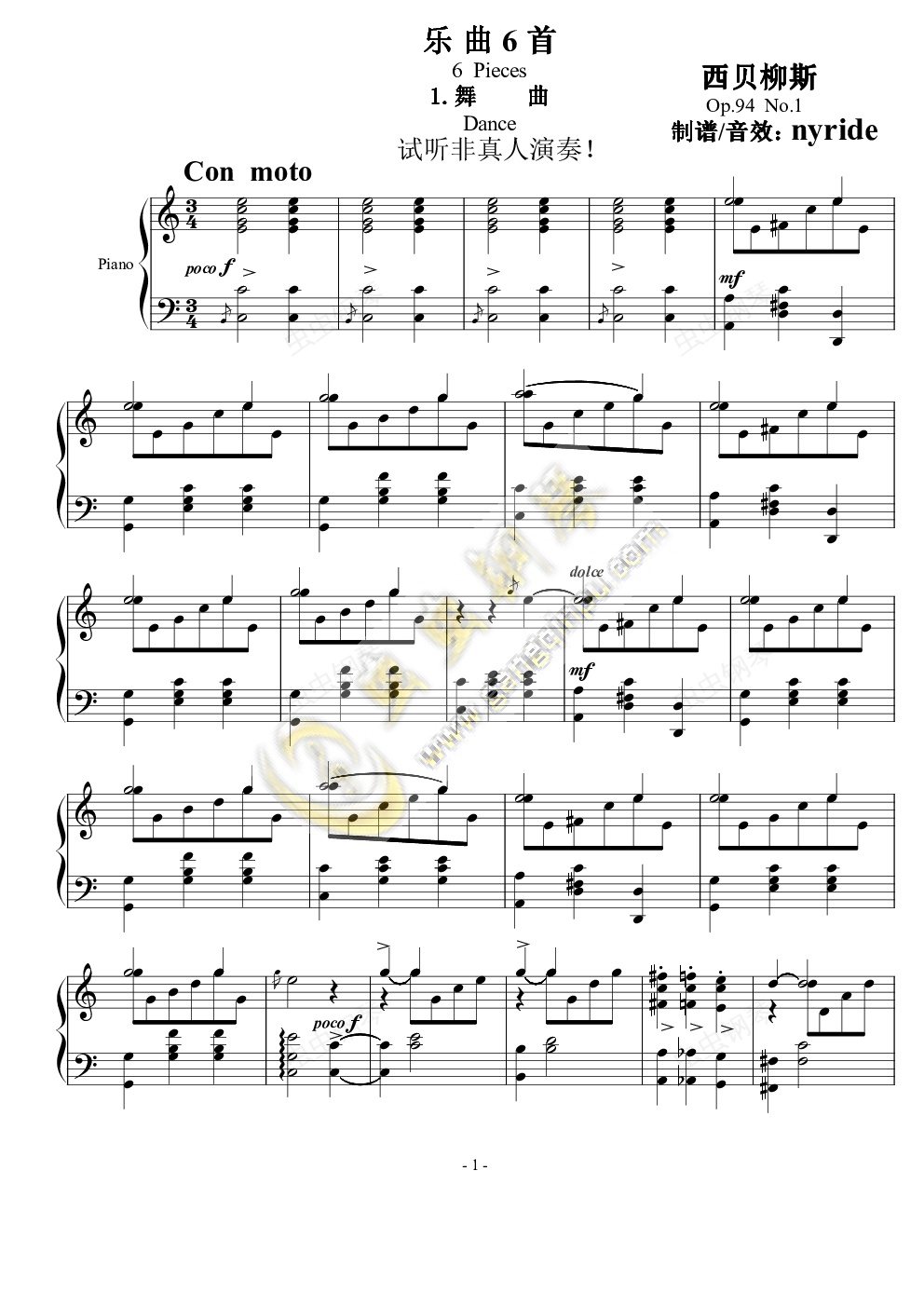 钢琴谱:西贝柳斯《舞曲》Op.94 No.1