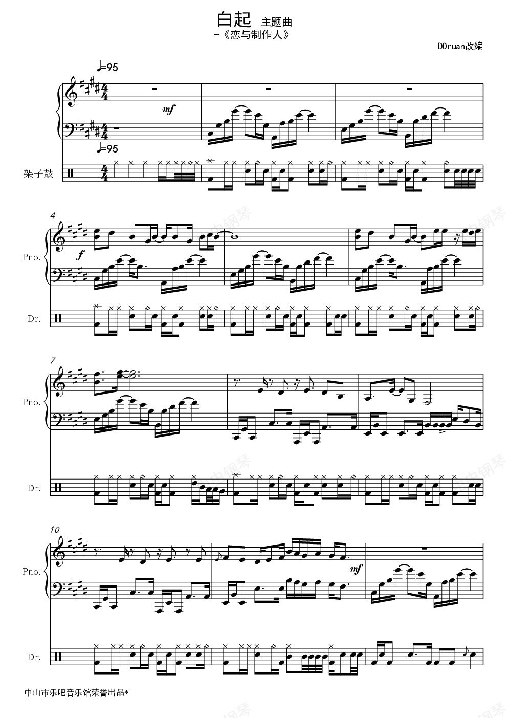 钢琴谱:《恋与制作人》- 白起 主题曲 湛蓝温度