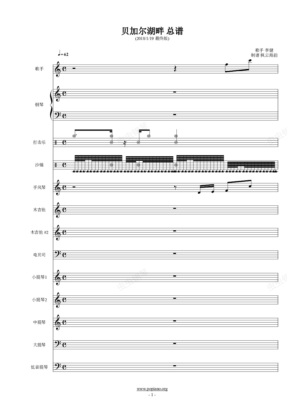 钢琴谱:贝加尔湖畔 总谱