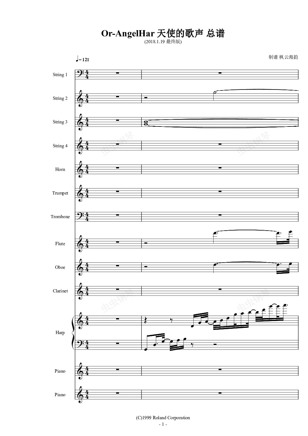 钢琴谱:Or-AngelHar 天使的歌声 总谱