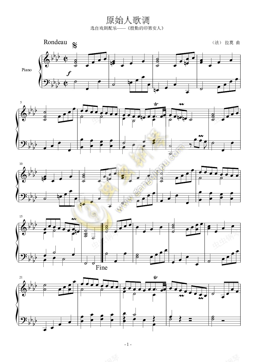 钢琴谱:拉莫 原始人歌调 ——选自戏剧配乐《殷勤的印第安人》