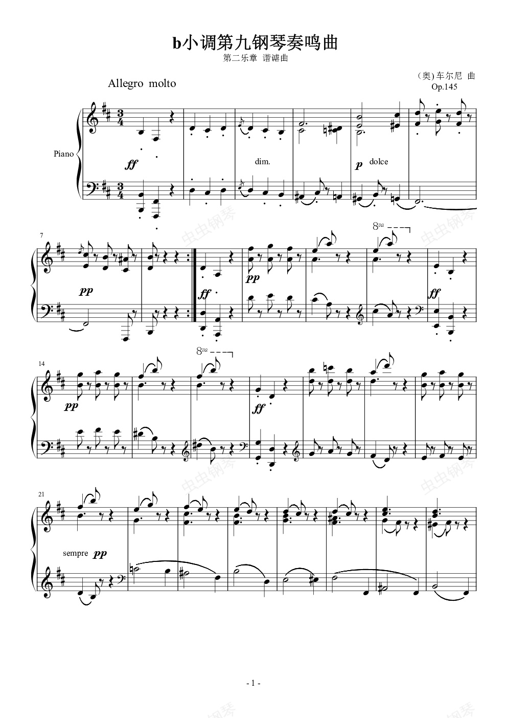 钢琴谱:车尔尼  b小调第九钢琴奏鸣曲   Op.145    第二乐章   谐谑曲