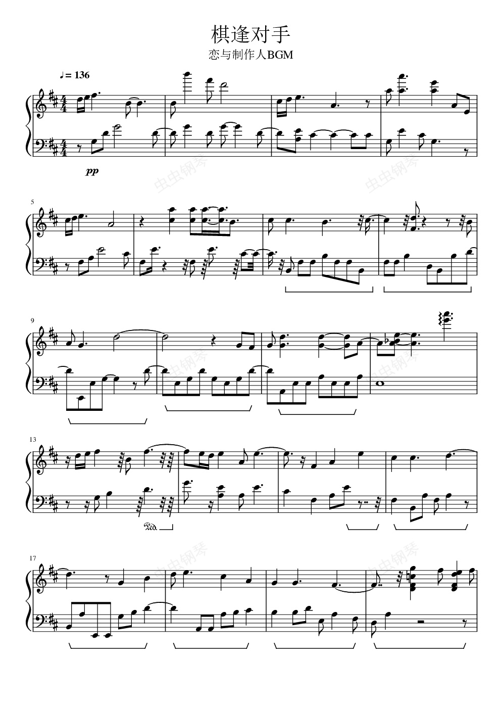 钢琴谱:恋与制作人BGM棋逢对手/无声告白