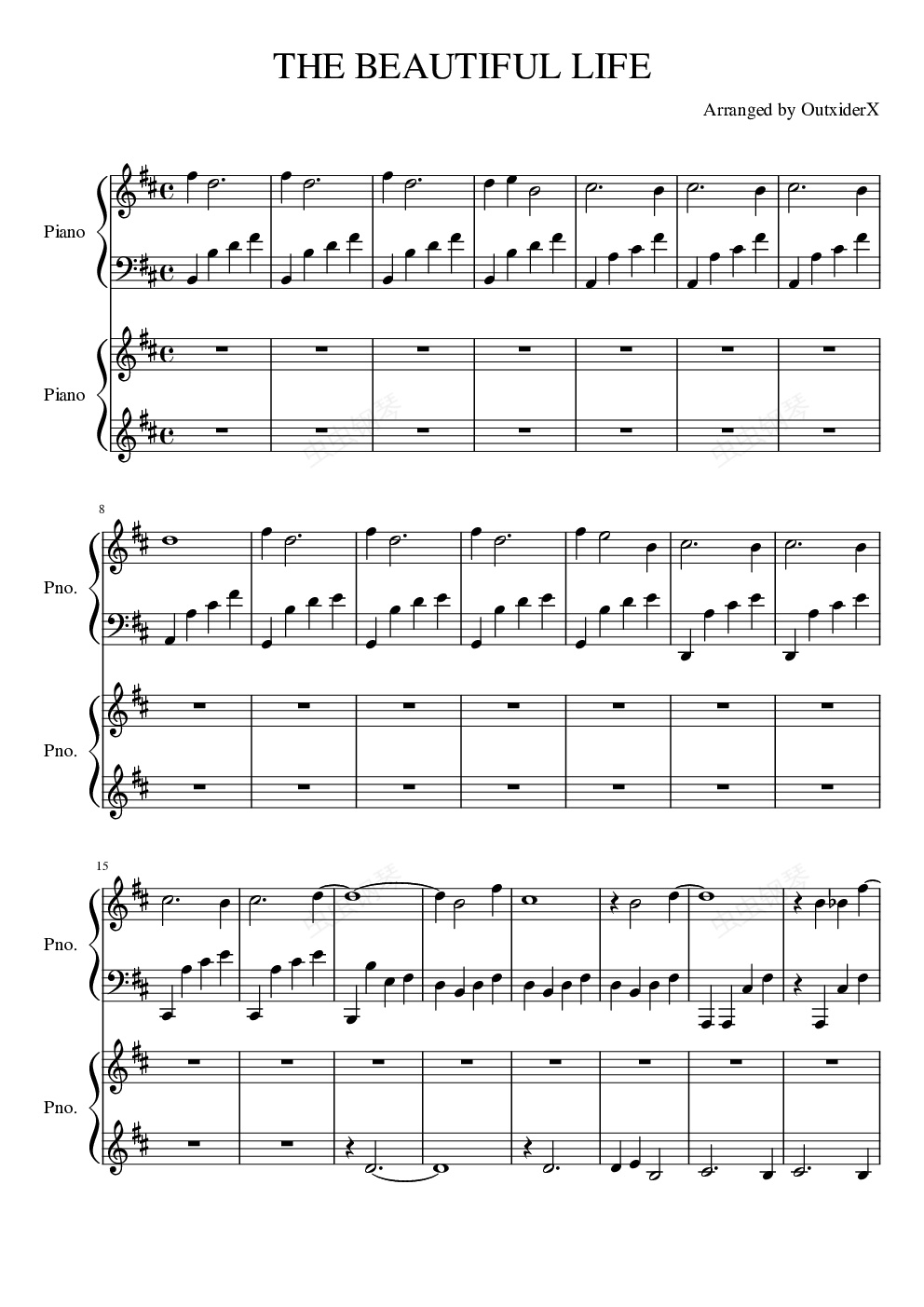钢琴谱:The Beautiful Life