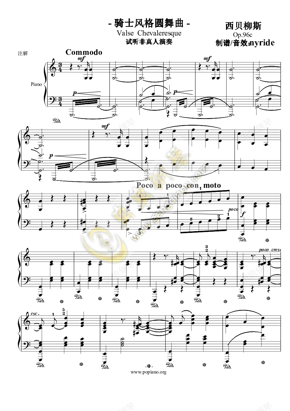 钢琴谱:西贝柳斯《骑士风格圆舞曲》