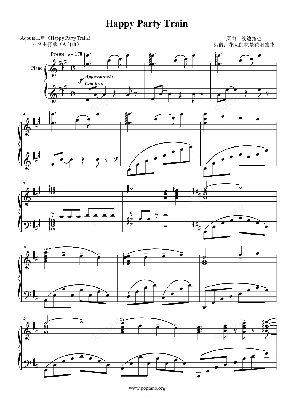 一个谱子肝了俩礼拜,MV看了十几遍原曲听了上百遍,间奏那段简直是噩梦般的存在,导致中途多次难产想弃坑。不!过!最终还是把说好的《Happy Party Train》做出来了。P.S.《思念合二为一》的钢琴版已经在B站上有了,。重新上传一次为什么第12页没有了??![IMG]/pu/2018/2/1/__8991__[/IMG]