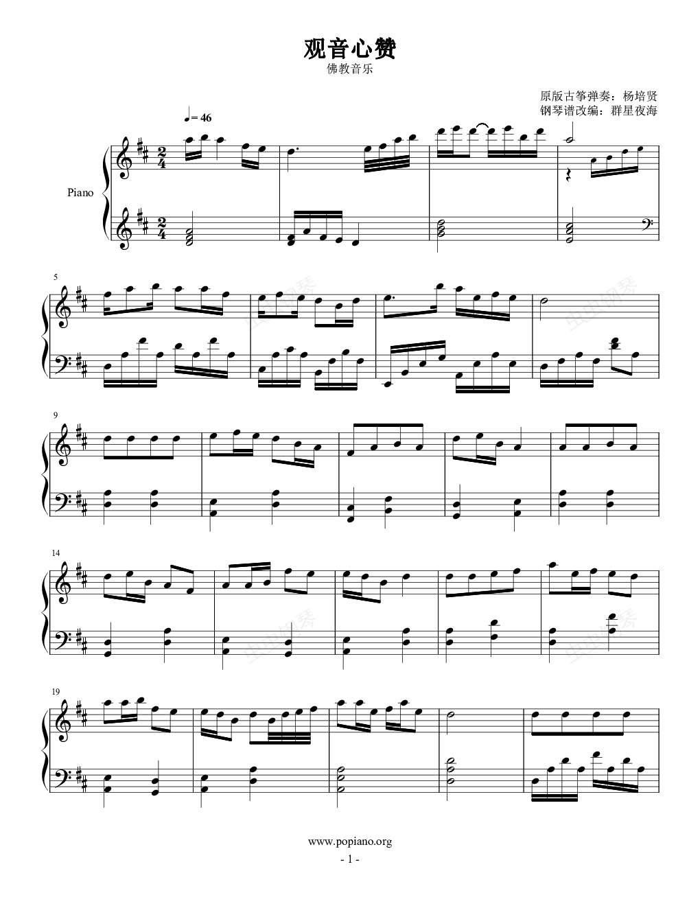 钢琴谱:观音心赞【2.0完美版】